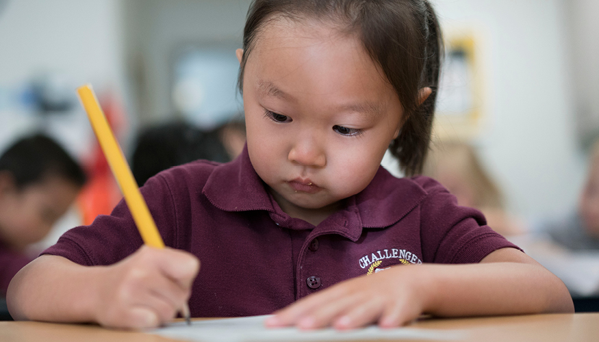This month, all-day 4-year-olds will begin additional activities in which they will be introduced to Challenger manuscript and work on their pencil grip and strokes. Developing these skills will, in time, enable them to successfully write words and, eventually, sentences.