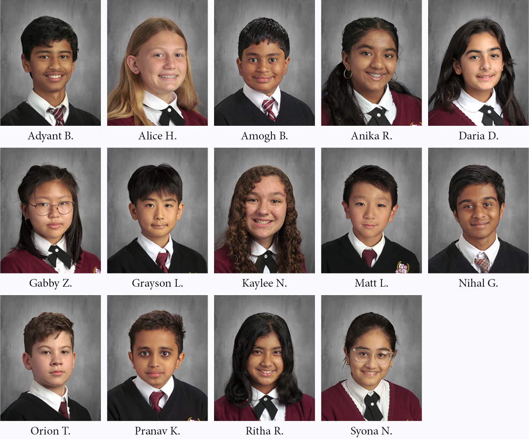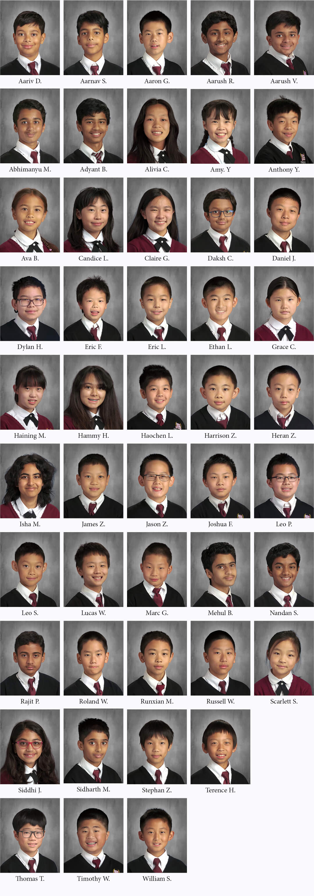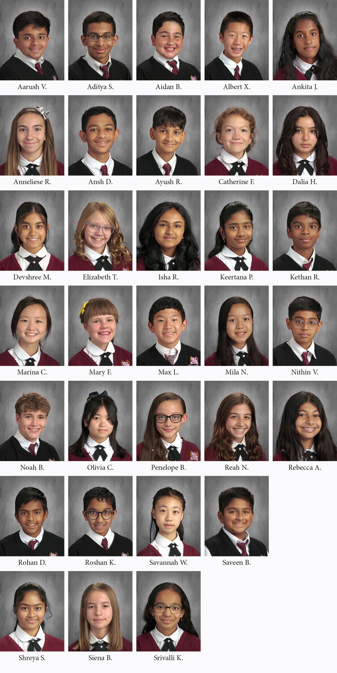Fifth through eighth-grade students participated in the American Mathematics Competition 8 (AMC 8) test this spring, and the following students received the Honor Roll of Distinction commendation for scoring in the top 1% of all AMC 8 test takers nation-wide.