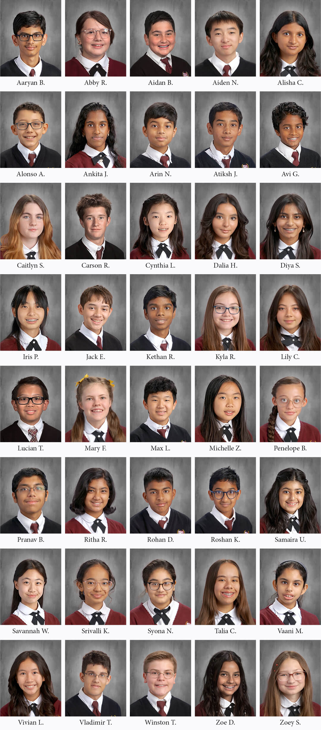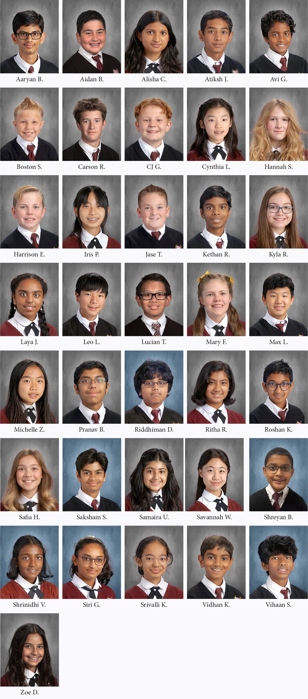 Fifth- through eighth-grade students participated in the American Mathematics Competition 8 (AMC 8) test this spring, and the following students received the Honor Roll of Distinction commendation for scoring in the top 1% of all AMC 8 test takers nation-wide.